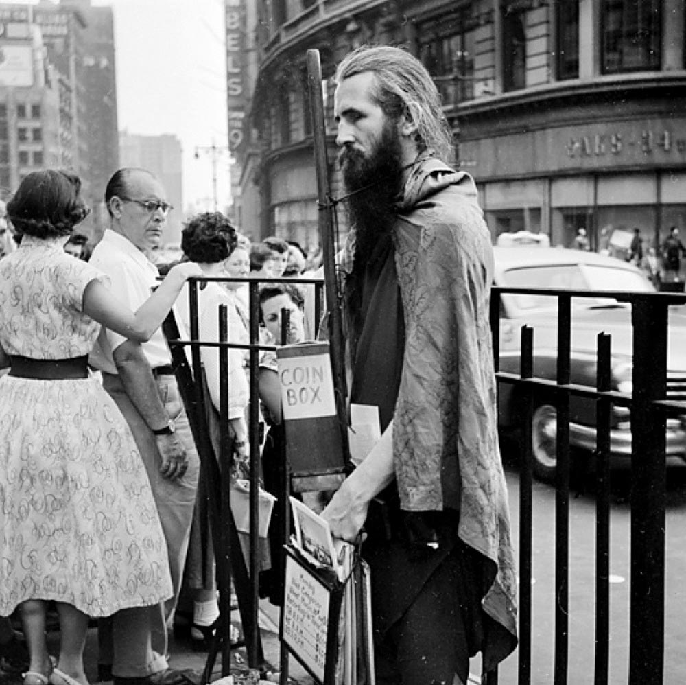 Durante los años 50 y 60, una de las curiosidades más fotografiadas de Nueva York, junto con el Empire State Building o Central Station, era Moondog.